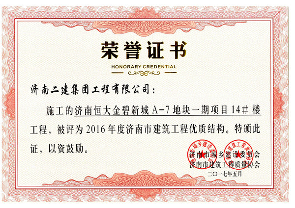 恒大金碧新城A-7地塊一期14#-2016年度濟南市建筑工程優質結構