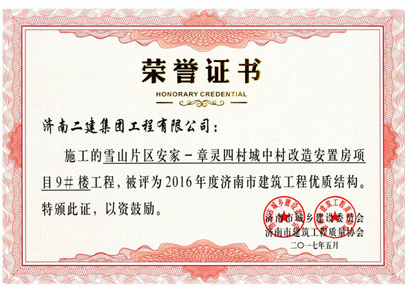 雪山片區安家-章靈四村城中村改造安置房項目9#-2016年度濟南市建筑工程優質結構