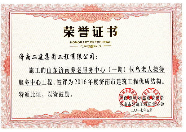 山東濟南養老服務中心(一期)候鳥老人接待服務中心-2016年度濟南市建筑工程優質結構