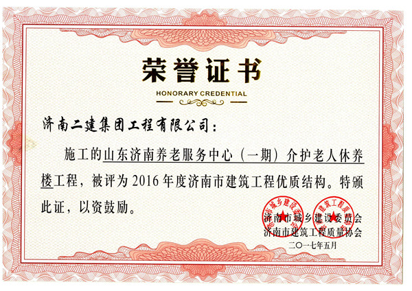 山東濟南養老服務中心(一期)介護老人修養樓-2016年度濟南市建筑工程優質結構