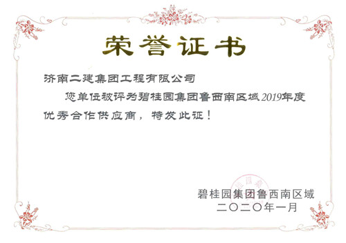 集團(tuán)公司被評為碧桂園魯西南區(qū)域優(yōu)秀合作供應(yīng)商