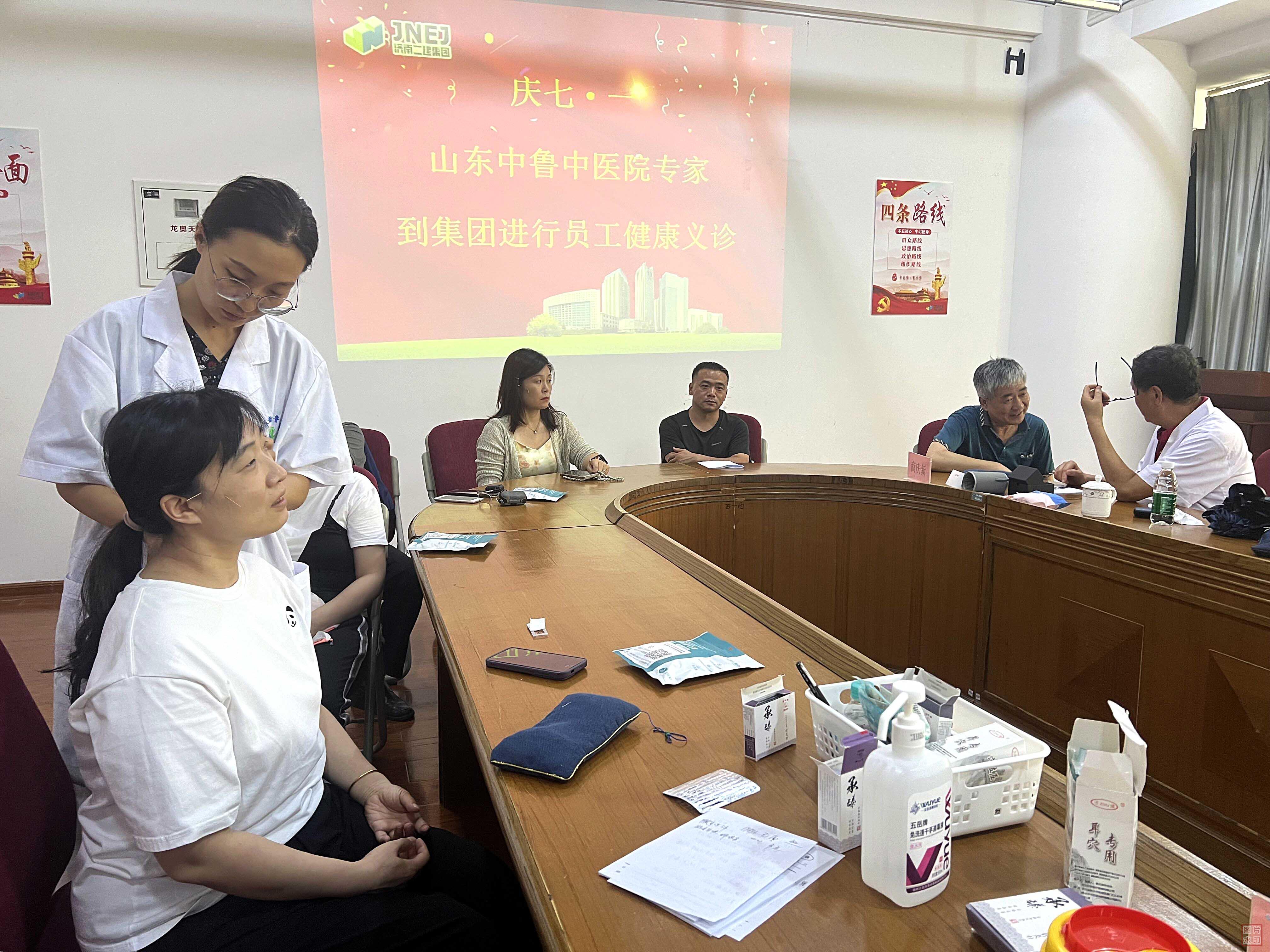 7月1日下午,山東新中魯中醫(yī)院著名中醫(yī)藥專家王小平、商慶新、田佳新在504會(huì)議室為集團(tuán)公司干部職工義診。義診期間,幾名專家同集團(tuán)公司50多名前來(lái)問(wèn)診的患者進(jìn)行了耐心交流,仔細(xì)詢問(wèn)病史、癥狀,進(jìn)行必要的體格檢查,解答疑問(wèn),為大家普及了養(yǎng)生健康常見(jiàn)病防治等基本疾病知識(shí),送上健康宣傳資料,并為部分患者現(xiàn)場(chǎng)針灸治療及開(kāi)具處方。本次健康義診建黨節(jié)主題活動(dòng)形式新穎,受到了大家一致好評(píng),充分體現(xiàn)了集團(tuán)公司注重以人為本,關(guān)愛(ài)員工身心健康的人文關(guān)懷精神,為黨建引領(lǐng)下的企業(yè)可持續(xù)健康發(fā)展提供了良好助力。