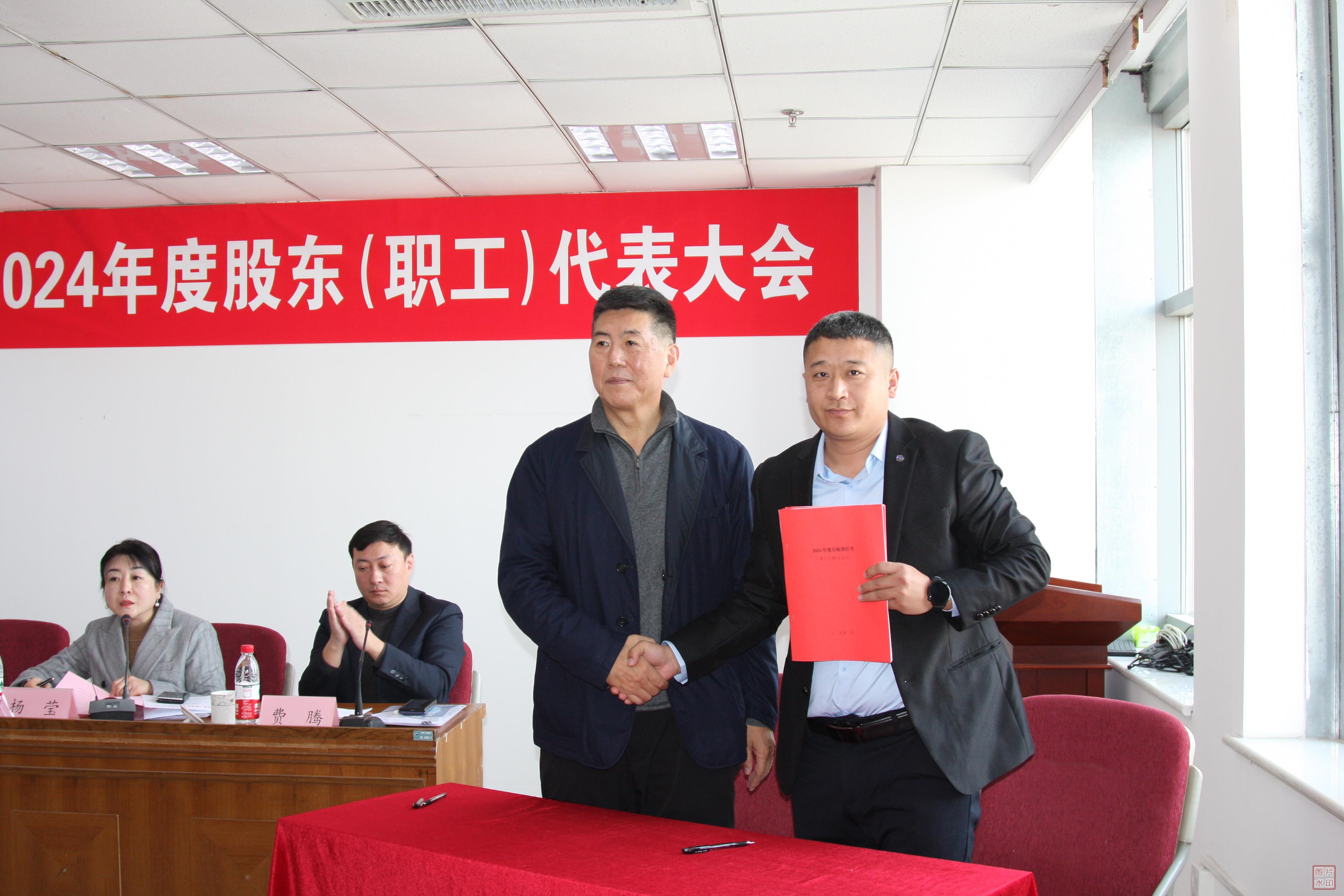 王董事長與第九分公司經(jīng)理胡效陽簽訂2025年目標(biāo)責(zé)任書