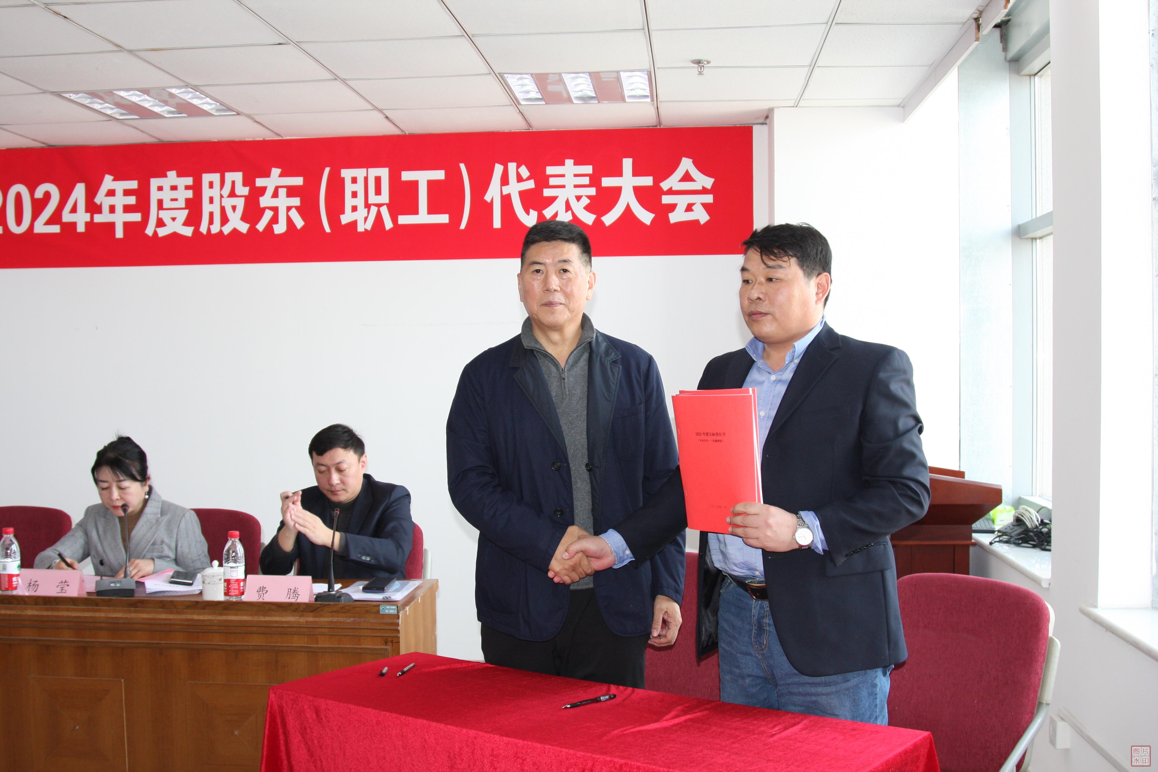王董事長與乳山分公司經(jīng)理付祖軍簽訂2025年目標(biāo)責(zé)任書
