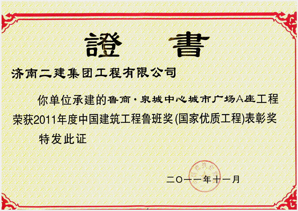 魯商?泉城中心城市廣場A座工程(魯班表彰獎)