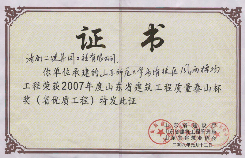 山東師范大學長清校區風雨操場榮獲“泰山杯”質量榮譽