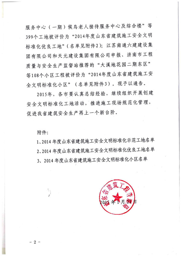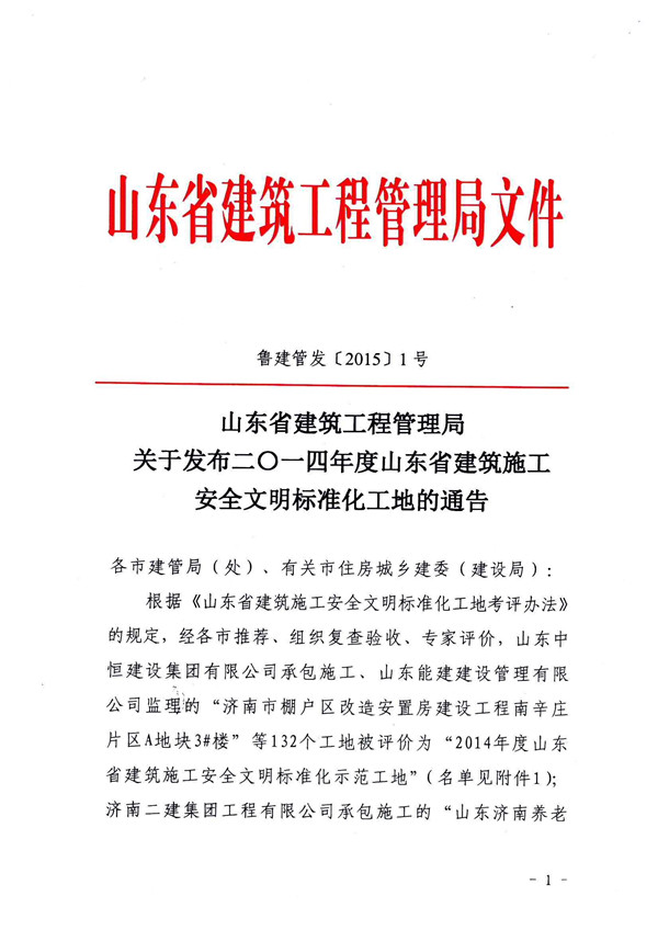 熱烈祝賀我公司榮獲2015年省級建筑施工安全文明標準化工地