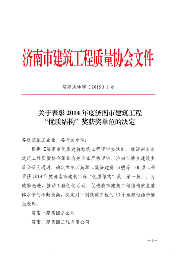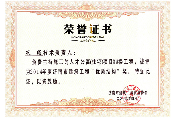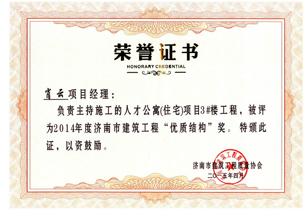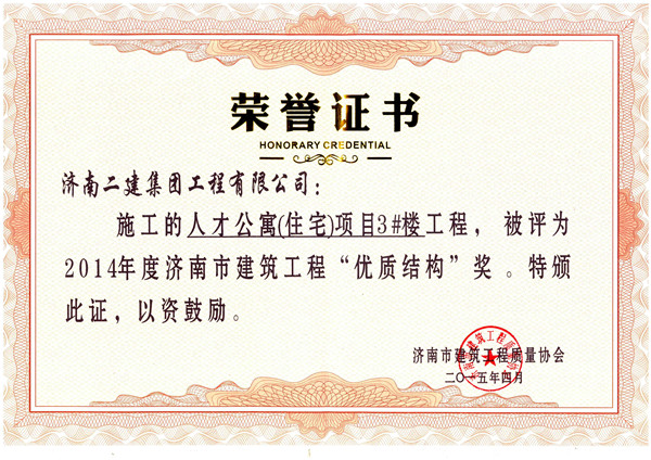 熱烈祝賀我公司人才公寓項(xiàng)目3#樓榮獲濟(jì)南市建筑工程“優(yōu)質(zhì)結(jié)構(gòu)杯”