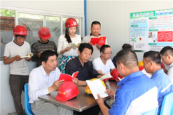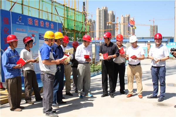5月17日,槐蔭區發改委黨委武勇書記、郭松主任、蘇令勇主任來到我集團第三分公司所施工的恒大·翡翠華庭項目部,給廣大黨員同志送來了“兩學一做”活動專用書籍,武書記在施工現場給黨員們現場講解習總書記“兩學一做”學習教育活動的重點、要求,并與我們的黨員同志進行交流、給予指導,希望從基層黨員開始,認真學習習總書記關于“兩學一做”教育活動的要求,認真學習黨章黨規、學系列講話,做一名合格的共產黨員!