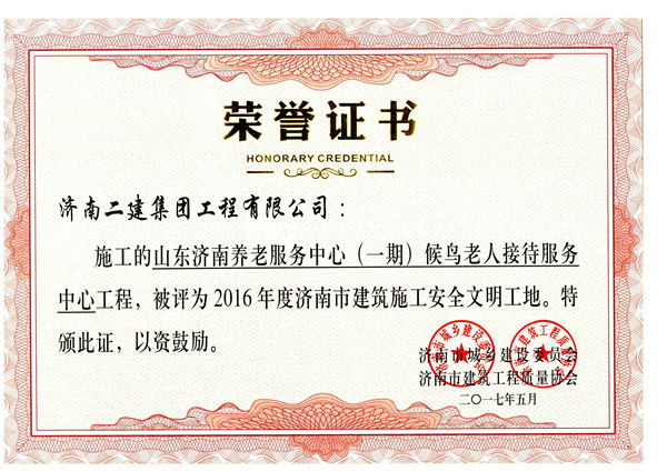 被評為2016年度濟南市建筑施工安全文明工地