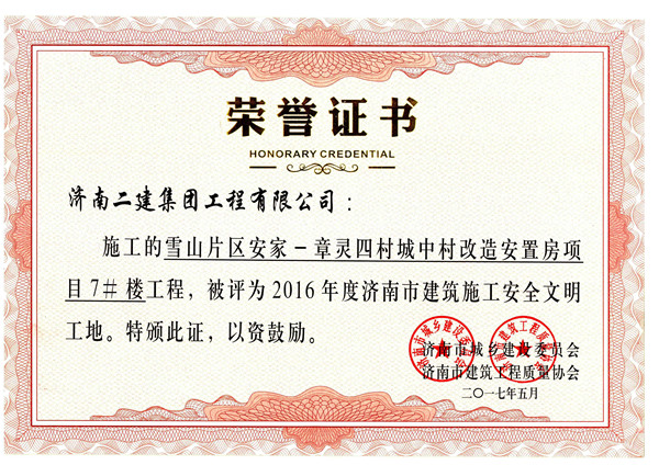 雪山片區-章靈四村城中村改造7#樓-2016年度濟南市建筑施工安全文明工地